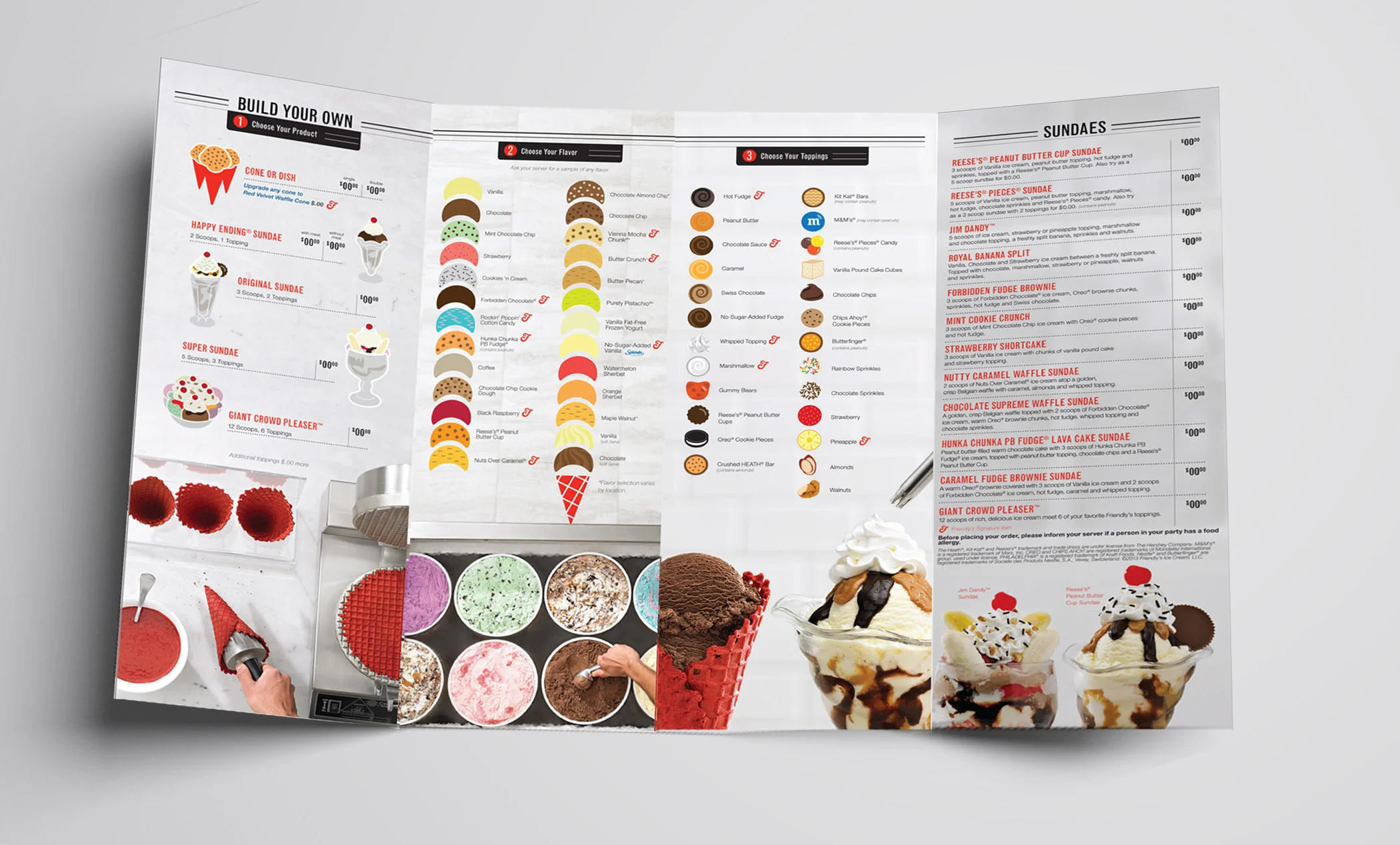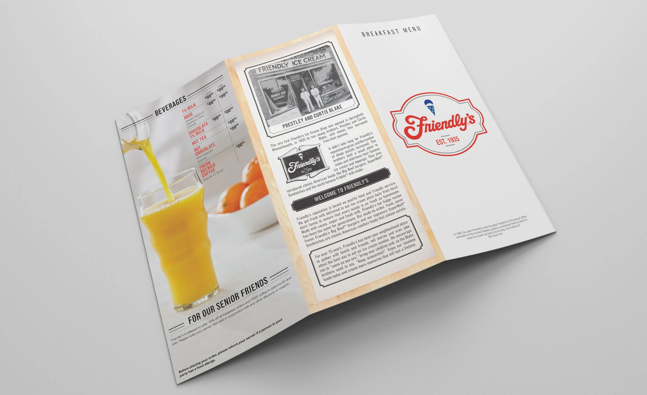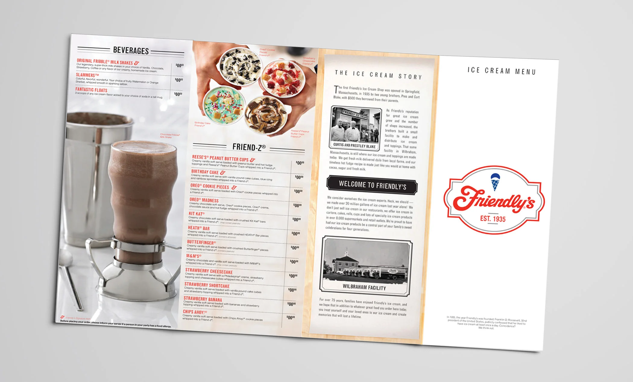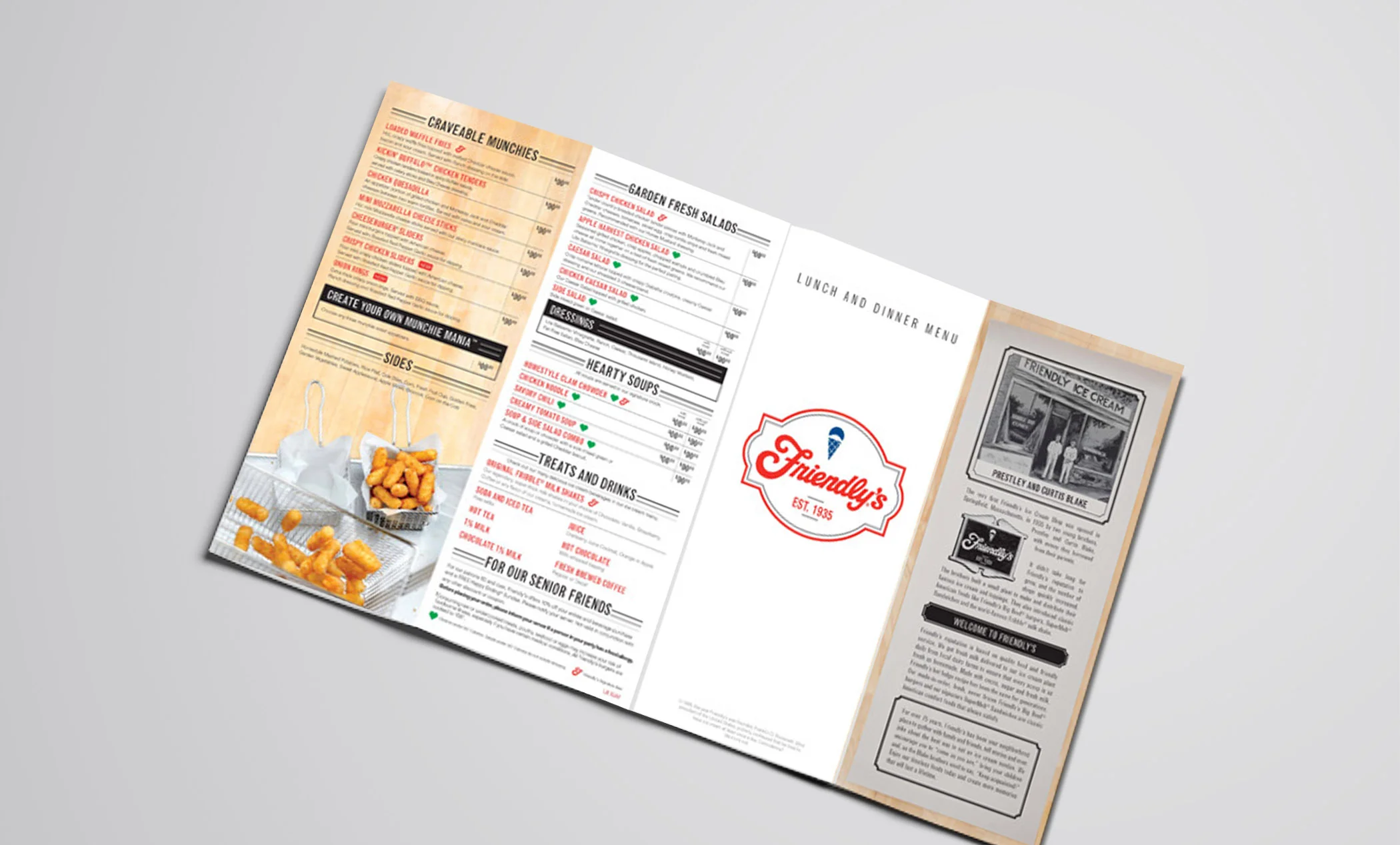 Friendly's is a classic, old-school diner restaurant in the Northeast known for their ice cream. They wanted a complete update of their three expansive menus.